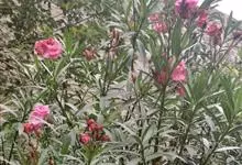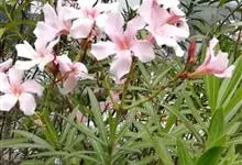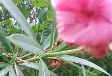 夹竹桃,又名红花夹竹桃、欧洲夹竹桃,是夹竹桃科夹竹桃属的一种常绿直立大灌木,枝条灰绿色,含水液。叶披针形,3叶轮生。聚伞花序顶生,花冠粉红至深红色,花冠漏斗状,有特殊香味。蓇葖果,圆柱形。种子长圆形,…全部>>