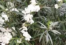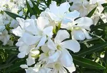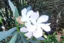白花夹竹桃是夹竹桃科、夹竹桃属植物夹竹桃的栽培品种。常绿直立大灌木,枝条灰绿色;嫩枝条具稜,被微毛,老时毛脱落。叶3-4枚轮生,下枝为对生,叶面深绿,叶背浅绿色;侧脉纤细平行与中脉成直角;叶柄扁平,…全部>>