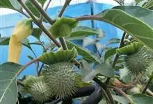 曼陀罗,茄科曼陀罗属一年生大型草本植物,全株光滑。有臭气;叶呈广卯形,边缘具不规则波状浅齿裂;花单生于枝杖间或叶腋,直立,有短梗;花萼是筒状裂片三角形,颜色为白色或淡紫色;果实为蒴果卵状,…全部>>