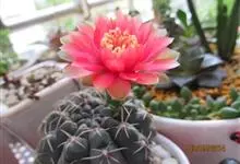绯花玉 Speg.)是仙人掌科、裸萼球属多肉植物,植株呈扁球形,表皮墨绿色,刺针状,每个刺座有5枚灰色周刺,花生于球体顶端,夏季开花,花色有白、粉红、深红等。果实纺锤形,深灰绿色,种子黑色。…全部>>