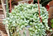 翡翠珠,是菊科千里光属的多年生常绿肉质草本植物。茎纤细,全株被白色皮粉;叶互生,较疏,圆心形,深绿色,肥厚多汁;头状花序,顶生,长3-4厘米,呈弯钩形,花白色至浅褐色;花期12月~翌年1月。…全部>>