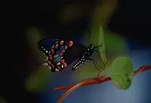 荧光裳凤蝶是凤蝶科裳凤蝶属的一种大型蝴蝶,该物种共有3个亚种。该蝶飞翔的时候姿态优美,前翅黑色,后翅金黄色和黑色交融的斑纹在阳光照射下金光灿灿,显得华贵美丽。幼虫寄主为多种马兜铃属的植物,取食马兜铃…全部>>