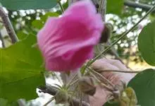 木芙蓉,锦葵科木槿属落叶灌木或小乔木。小枝上有细绒毛;叶片为卵状心形,托叶为披针形,常早落;花单生,花萼为钟形,花冠初为白色或淡红色,后逐渐变为深红色;果实为扁球形,有淡黄色的毛附着。花期8到10月。…全部>>