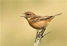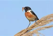 黑喉石鵖,雀形目鹟科石鵖属小型鸣禽,俗名谷尾鸟、黑喉石。其体色为黑褐色。雄鸟头部、背部、两翼及尾黑色,颈侧及翼上具白斑,胸部和腹侧红棕色,腰及尾下覆羽白色。雌鸟体色为褐色,上体具深色纵纹,胸部染棕色,…全部>>