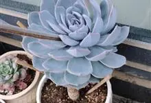 蓝石莲是景天科、拟石莲花属的多肉植物。茎部粗壮,成熟植株茎部木质化。叶片莲座型密集排列,株径不会很大,叶片相对较薄,常年绿色,表面布有白色粉末,中部凹陷,呈倒水滴状。叶尖较尖,叶缘光滑无褶皱,…全部>>