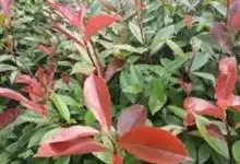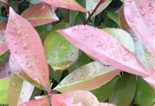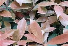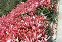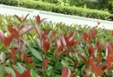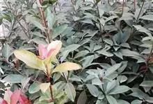 红叶石楠 是蔷薇科,石楠属杂交种,为常绿小乔木或灌木,乔木高可达5米、灌木高可达2米。叶片革质,长圆形至倒卵状、披针形,叶端渐尖,叶基楔形,叶缘有带腺的锯齿,花多而密,复伞房花序,花白色,梨果黄红色,…全部>>