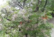 楝是楝科,楝属植物。落叶乔木,高可达10米;树皮灰褐色,分枝广展,叶为2-3回奇数羽状复叶,小叶对生,叶片卵形、椭圆形至披针形,顶生叶略大。圆锥花序约与叶等长,花芳香;裂片卵形或长圆状卵形,先端急尖,…全部>>
