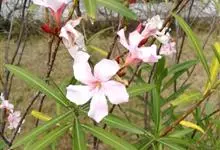 夹竹桃,又名红花夹竹桃、欧洲夹竹桃,是夹竹桃科夹竹桃属的一种常绿直立大灌木,枝条灰绿色,含水液。叶披针形,3叶轮生。聚伞花序顶生,花冠粉红至深红色,花冠漏斗状,有特殊香味。蓇葖果,圆柱形。种子长圆形,…全部>>