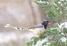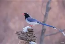 红嘴蓝鹊,别名山鹊、长尾鹊,是鸦科蓝鹊属的一种观赏性较强的大型鸣禽。该物种为体长54~65cm,头、颈、喉和胸黑色,头顶至后颈有一块白色至淡蓝白色或紫灰色块斑,其余上体紫蓝灰色或淡蓝灰褐色。尾长呈凸状,…全部>>