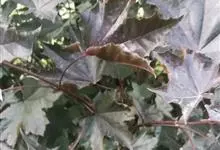 元宝槭为无患子科槭属落叶乔木,高达10米。叶长5—12厘米,宽8—12厘米,裂片三角状卵形,基部平截,稀微心形,幼叶下面脉腋具簇生毛,掌状;叶柄长3—13厘米。伞房花序顶生;雄花与两性花同株。…全部>>