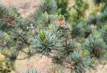 日本五针松,是松科松属常绿乔木。其树冠圆锥形;树皮灰黑色,不规则鳞片状剥裂;小枝密生淡黄色柔毛;叶蓝绿色,较短细,有白色气孔线,叶鞘早落;球果卵圆形或卵状椭圆形。花期5月中旬,果熟期翌年10月。…全部>>