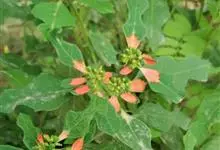 猩猩草:常绿或半常绿灌木,盆栽时株高0.5米-2米,在亚热带地区可长到6米以上。茎直立而光滑,单叶互生,卵状椭圆形至阔披针形,具不规则的深缺刻。长10-15厘米。花小,有蜜腺,排列成密集的伞房花序。…全部>>