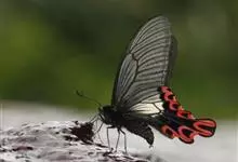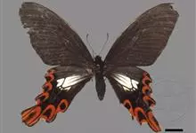 宽尾凤蝶是凤蝶科、宽尾凤蝶属昆虫。翅展115-130毫米。体、翅黑色,翅面散生黄色鳞片;前翅前缘色深,后翅外缘波状,波谷红色,。雄性外生殖器上钩突窄小,骨化。雌性外生殖器产卵瓣较长;交配孔宽大,…全部>>
