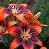 亚洲百合,百合科百合属植物。多年生草本,高30~60厘米。鳞茎卵球形。总状花序,花漏斗状,朝上开放,有黄、红、橙等色,有的品种花瓣上有深色斑点。花期夏季。叶互生,窄卵圆形或椭圆形,深绿色。花期6~7月。…全部>>