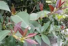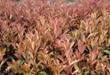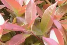 红叶石楠 是蔷薇科,石楠属杂交种,为常绿小乔木或灌木,乔木高可达5米、灌木高可达2米。叶片革质,长圆形至倒卵状、披针形,叶端渐尖,叶基楔形,叶缘有带腺的锯齿,花多而密,复伞房花序,花白色,梨果黄红色,…全部>>