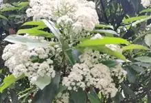 石楠 Kalkman),是蔷薇科石楠属的常绿乔木,高5~12米,株型紧凑,树冠圆球形。树枝为褐灰色;鳞片为褐色,没有毛;叶片革质,长椭圆至侧卵状椭圆形,有锯齿,新叶红色光亮。复伞房花序,白色小花,…全部>>