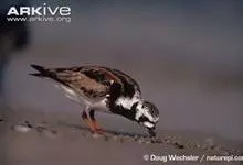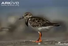 翻石鹬:体重82-135克,体长180-240毫米。体型高矮兼称,看起来十分的滑稽。它们在繁殖季时体色非常醒目,由栗色、白色和黑色交杂而成,嘴短,黑色,脚橙红色。到了冬天,翻石鹬身上的栗红色就会消失,…全部>>