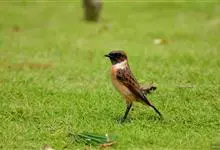 黑喉石鵖,雀形目鹟科石鵖属小型鸣禽,俗名谷尾鸟、黑喉石。其体色为黑褐色。雄鸟头部、背部、两翼及尾黑色,颈侧及翼上具白斑,胸部和腹侧红棕色,腰及尾下覆羽白色。雌鸟体色为褐色,上体具深色纵纹,胸部染棕色,…全部>>