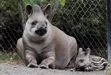 低地貘:体长达1.7-2.1米,尾巴长5-10厘米,体重200-250千克,肩高0.7-1.1米。呈灰棕色至深褐色,腹部色淡。颈部及耳缘白色,由头顶至颈背有一道短而直立的鬃毛,带黑色,身上的毛短而光…全部>>