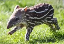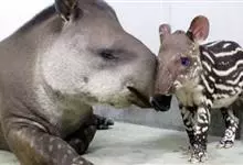 低地貘:体长达1.7-2.1米,尾巴长5-10厘米,体重200-250千克,肩高0.7-1.1米。呈灰棕色至深褐色,腹部色淡。颈部及耳缘白色,由头顶至颈背有一道短而直立的鬃毛,带黑色,身上的毛短而光…全部>>