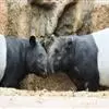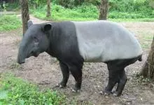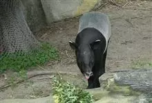 亚洲貘:亦称马来貘,是貘类中最大的一种,体长为1.8-2.5米,肩高90-120厘米,尾长5-10厘米,体重250-540千克。又叫五不像,它的鼻似象,耳似犀,尾似牛,足似虎,躯似熊,全身毛色黑白相…全部>>