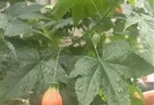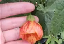 红萼苘麻是锦葵科、苘麻属常绿软木质灌木,叶绿色,长5-10厘米,心形,叶端尖,叶缘有钝锯齿,有时分裂,有细细的叶柄;叶互生,掌状叶脉;花单生于叶腋,具长梗,下垂;花萼红色,半套着大约4厘米长的花瓣,…全部>>