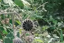 磨盘草 Sweet),又名:金花草、唐挡草。一年生成多年生、直立、分枝,亚灌木状草本,高0.5~2.5米,全部皆被灰色短柔毛。生于砂地、旷野或路旁。果为倒圆形似磨盘,直径约1.5厘米,黑色,…全部>>