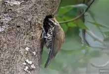 旋木雀是旋木雀科旋木雀属的一种动物。小型鸟类,体长12~15厘米,平均重10克。嘴长而下曲,上体棕褐色具白色纵纹,腰和尾上覆羽红棕色,尾黑褐色,外翈羽缘淡棕色,翅黑褐色,翅上覆羽羽端棕白色,…全部>>