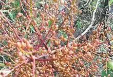 黄连木,漆树科黄连木属落叶乔木植物。树干扭曲,树皮暗褐色;幼枝灰棕色,具有细小皮孔;小叶对生或近对生,纸质,侧脉和细脉两面突起;花单性异株,先花后叶,花小;子房球形,无毛,花柱极短;核果倒卵状球形,…全部>>
