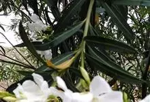 白花夹竹桃是夹竹桃科、夹竹桃属植物夹竹桃的栽培品种。常绿直立大灌木,枝条灰绿色;嫩枝条具稜,被微毛,老时毛脱落。叶3-4枚轮生,下枝为对生,叶面深绿,叶背浅绿色;侧脉纤细平行与中脉成直角;叶柄扁平,…全部>>