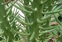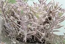 棒叶落地生根是景天科、落地生根属植物。茎直立、粉褐色。叶圆棒形,上表面有沟、粉色,有红褐斑。叶片交互对生,交叉排列成十字形。叶端锯齿上长有很小的幼株、落地后即可生根成活。原产非洲马达加斯加。…全部>>