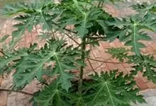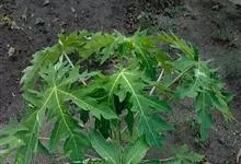 番木瓜,番木瓜科番木瓜属的常绿软木质小乔木,高达10米,具有乳汁;茎不分枝或有时于损伤处分枝;叶大且聚生于茎顶,近似盾形,叶柄中空;花单性或两性,有些品种雄株偶尔生两性花或雌花,…全部>>