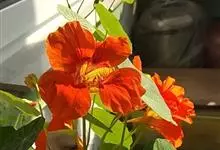 旱金莲是旱金莲科旱金莲属蔓生一年生草本植物。叶互生,叶柄向上扭曲,盾状,叶圆形,具波状浅缺刻,下面疏被毛或有乳点;花黄、紫、桔红或杂色,花托杯状,花瓣为圆形,边缘具缺刻;果实为扁球形;花果期6-10月,…全部>>