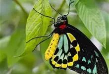 金裳凤蝶是凤蝶科、裳凤蝶属的动物。金裳凤蝶身体呈黑色,头、颈和胸侧有红毛,腹部有黑黄两色相间条纹,雄蝶前翅黑色,具黑天鹅绒光泽,各脉两侧灰白色,后翅金黄色,各室外缘有等腰三角形黑斑1枚,斑内侧有晕,…全部>>