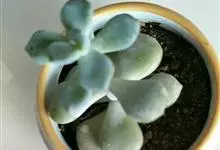 星美人是景天科、厚叶莲属多年生多浆肉质草本植物。植株具直立的短茎。叶12-20片互生,排列呈延长的莲座状,肉质,倒卵形,长2-4厘米,宽2-2.5厘米,厚2厘米,先端平滑钝圆,…全部>>