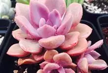 紫珍珠是景天科石莲花属的多年生肉质草本植物。植株中小型;叶片肉质,匙形,呈莲座状紧密排列;叶片粉紫色,叶缘呈粉白色,光照充足时颜色亮丽,不足时叶色会呈现深绿色或灰绿色,叶面光滑,被轻微白粉,…全部>>