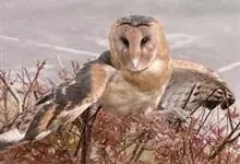 仓鸮,是鸮形目草鸮科草鸮属鸟类,其头大而圆,面盘白色,有时沾棕,眼先棕色,眼周浅棕色;面盘四周围有一棕色或橙黄色领环,颈侧及肩浅棕黄色,微具黑褐色及白色斑点;其余上体浅灰色,羽缘棕黄色,…全部>>