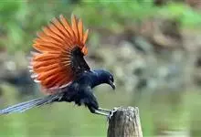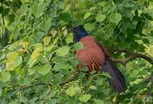 褐翅鸦鹃,是鹃形目鸦鹃科鸦鹃属的鸟类。褐翅鸦鹃的身体为黑色;头颈和胸带蓝紫色金属光泽并具黑亮的羽干纹,下胸至腹部泛金属绿光泽;两翼和肩部为棕栗色,外侧飞羽具暗色羽端,尾羽闪铜绿色光泽;虹膜赤红色,…全部>>