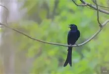 发冠卷尾是中型鸟类,体长28-35厘米。通体绒黑色缀蓝绿色金属光泽,额部具发丝状羽冠,外侧尾羽末端向上卷曲。栖息于海拔1500米以下的低山丘陵和山脚沟谷地带,多在常绿阔叶林、次生林或人工松林中活动。…全部>>