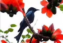 黑卷尾是雀形目卷尾科一属,又称铁练甲、铁燕子、铁林哥、羊蹄刺、榨油郎,体长约30厘米全身蓝黑色而具金属光泽,尾长且分叉较深。幼鸟似成鸟,金属光泽弱,下腹部具近白色的横纹。虹膜暗红色,嘴黑色,脚黑色。…全部>>