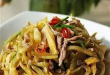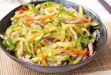 榨菜肉丝是四川省传统的名菜,属于川菜。此菜在四川家庭和中低档饭馆常年制作,原料易得,操作简便,咸淡适口,脆嫩鲜美。全部>>