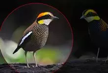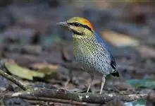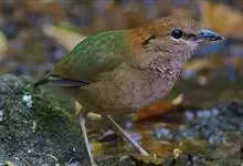 栗头八色鸫又叫锅巴雀,体长为24-26厘米,体重100-135克,是雀形目八色鸫科的鸟类。体型圆胖,尾短,腿长,常在森林底层或低植被中找食无脊椎动物。叫声简单哀婉。…全部>>