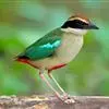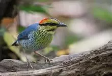 蓝翅八色鸫是雀形目八色鸫科的鸟类。体长17-20厘米,体重类约48-70克,体型圆胖,尾短,腿长,以身体具有红、绿、蓝、白、黑、黄、褐、栗等鲜艳夺目,丰富艳丽的色彩而得名,是很有观赏价值的鸟类。主要…全部>>