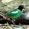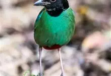 绿胸八色鸫:是雀形目八色鸫科的鸟类,共有12个亚种。体长为16-18厘米,体重65-69克。体型圆胖,尾短,腿长。头黑,上体绿色,两翼深色而具白色斑纹,头顶至后枕深褐,胸及腹部苹果绿,臀亮红。…全部>>
