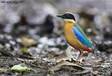 蓝翅八色鸫是雀形目八色鸫科的鸟类。体长17-20厘米,体重类约48-70克,体型圆胖,尾短,腿长,以身体具有红、绿、蓝、白、黑、黄、褐、栗等鲜艳夺目,丰富艳丽的色彩而得名,是很有观赏价值的鸟类。主要…全部>>