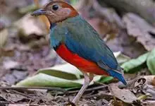 栗头八色鸫又叫锅巴雀,体长为24-26厘米,体重100-135克,是雀形目八色鸫科的鸟类。体型圆胖,尾短,腿长,常在森林底层或低植被中找食无脊椎动物。叫声简单哀婉。…全部>>