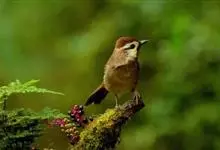 白颊噪鹛是雀形目噪鹛科噪鹛属鸟类,又称土画眉、小画眉、小噪鹃。成鸟额至头顶栗褐色,长眉纹、眼先和颊纹棕白色,眼后至耳羽深褐色,…全部>>