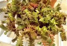 星乙女景天科,青锁龙属多年生肉质草本,植株呈亚灌木状,具细小的分枝,茎肉质,以后稍木质化,肉质叶灰绿至浅绿色,交互对生,卵圆状三角形,无叶柄, 基部连在一起,幼叶上下叠生,成叶上下有少许间隔。…全部>>