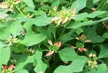 猩猩草:常绿或半常绿灌木,盆栽时株高0.5米-2米,在亚热带地区可长到6米以上。茎直立而光滑,单叶互生,卵状椭圆形至阔披针形,具不规则的深缺刻。长10-15厘米。花小,有蜜腺,排列成密集的伞房花序。…全部>>