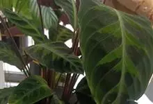绒叶肖竹芋 Lindl.)是竹芋科,肖竹芋属多年生中等大草本植物,株高可达1米。叶片长圆状披针形,不等侧,叶面深绿,有黄绿色的条纹,天鹅绒般,叶背幼时浅灰绿色,老时淡紫红色,头状花序,花冠紫堇色或白色,…全部>>